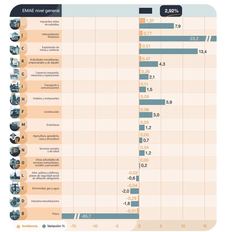 El informe del Indec ratifica la heterogeneidad en la economía argentina. Mientras la minería y los servicios financieros sostienen la recuperación, sectores clave como la industria y la pesca enfrentan serias dificultades para repuntar.
