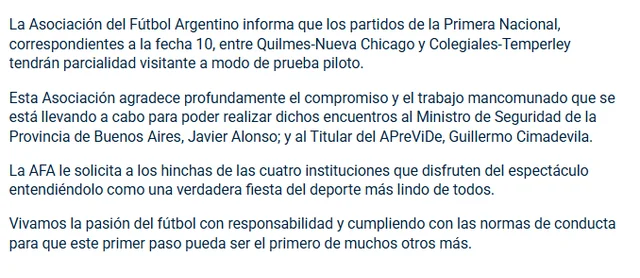 La Asociación del Fútbol Argentino dio un paso clave en el fútbol local al anunciar el regreso del público visitante en el Ascenso, una medida que comenzará como prueba piloto en la Primera Nacional.