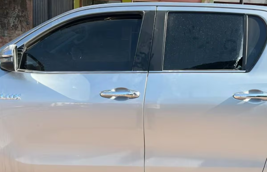 Según consta en la denuncia policial, el vehículo —una Toyota Hilux gris perteneciente a la empresa Frigorífico del NOA S.A.— recibió el impacto de bala en la ventanilla trasera izquierda, provocando la rotura total del vidrio.
