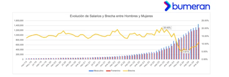 A lo largo de los últimos cinco años, la brecha más alta se registró en octubre de 2023, cuando los hombres pedían un 20,45% más que las mujeres. Esta disparidad salarial es más pronunciada en roles de mayor responsabilidad, como los de jefe y supervisor.