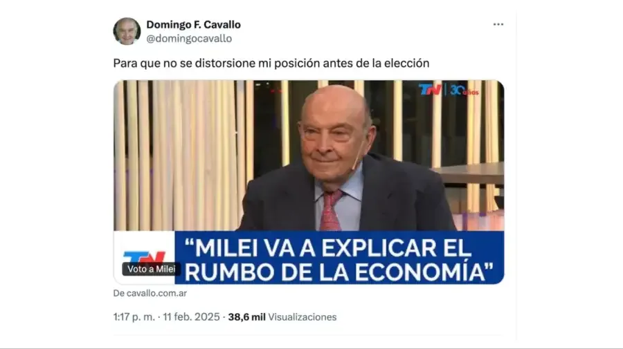 Ante esta crítica, Cavallo decidió recuperar su posteo de noviembre de 2023 titulado «Voto a Milei», con el que buscó reafirmar su postura previa y despejar dudas sobre su posición en el escenario político actual.