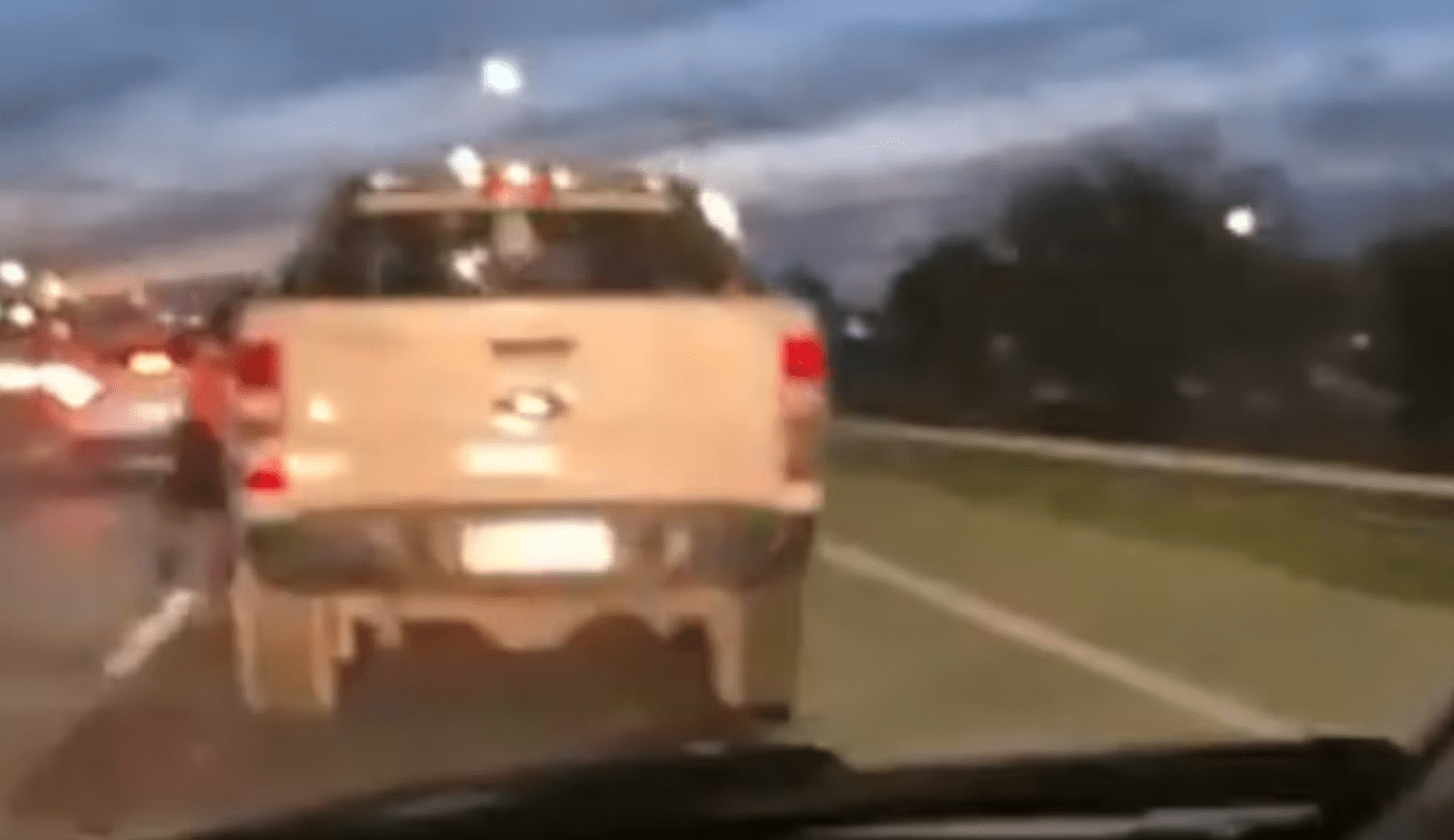 La camioneta avanzó por la banquina mientras el agente intentaba mantenerse en pie, hasta que finalmente cayó al asfalto, golpeándose contra el pavimento. El dramático momento fue captado por otro conductor que filmó toda la escena desde su auto.