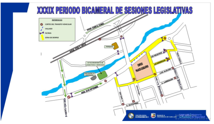 La Policía de San Luis informó el operativo de tránsito previsto para este 1° de abril en la ciudad capital, con motivo de la apertura del 150° Período Bicameral en la Legislatura provincial. Habrá cortes desde la mañana.