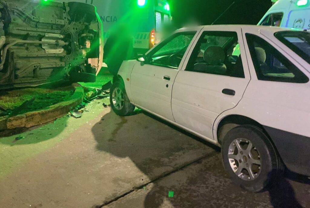 Cuatro heridos tras un violento choque y vuelco en avenida Lafinur Sur