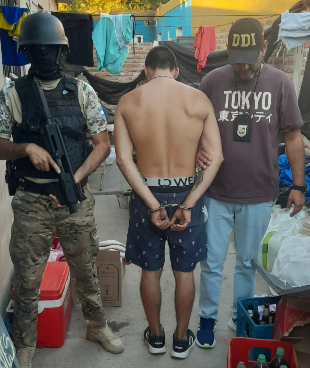 El sujeto, cuya intimidación quedó registrada en un video filmado por un testigo, vestía bermuda, remera celeste y gorra azul al momento del hecho. Durante el operativo, los agentes encontraron sustancias cuya procedencia y composición están bajo investigación.