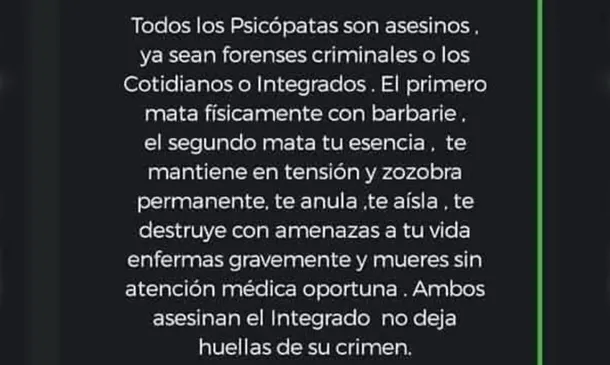 Días antes de ser asesinada, Luna Giardina había compartido en sus redes mensajes cargados de temor y advertencias sobre relaciones violentas. En febrero de 2024 escribió una frase que hoy resulta premonitoria: “Todos los psicópatas son asesinos”.