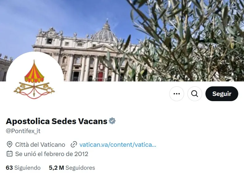 Luego del fallecimiento del papa Francisco, las cuentas oficiales en redes sociales del sumo pontífice fueron actualizadas como parte del protocolo vaticano. La cuenta en X (ex Twitter), que anteriormente figuraba como “Papa Francisco”, ahora aparece con el nombre Sede Apostólica Vacante y un nuevo escudo en la imagen de perfil: las llaves cruzadas y el pabellón papal, símbolo tradicional del período sin pontífice.