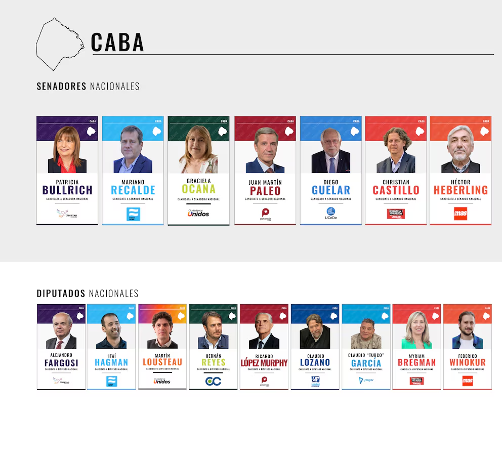 En tanto, Nicolás Del Caño (FIT), Florencio Randazzo (Provincias Unidas) y Santiago Cúneo (independiente) también competirán por una banca.