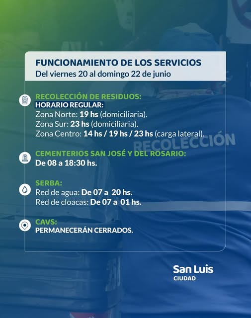 En el marco por el feriado del Día de la Bandera este 20 de junio, la Municipalidad dio a conocer cómo será el funcionamiento de los servicios públicos en la ciudad durante este fin de semana largo.