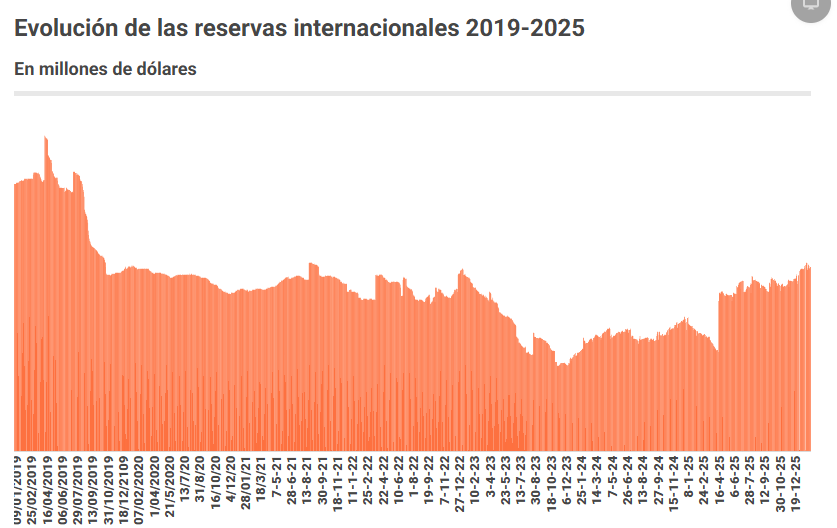 Además del resultado fiscal de 2026, uno de los puntos centrales es la meta de acumulación de reservas internacionales netas del Banco Central de la República Argentina (BCRA), un objetivo que no fue alcanzado en el último trimestre de 2025.