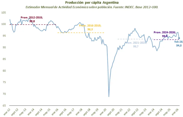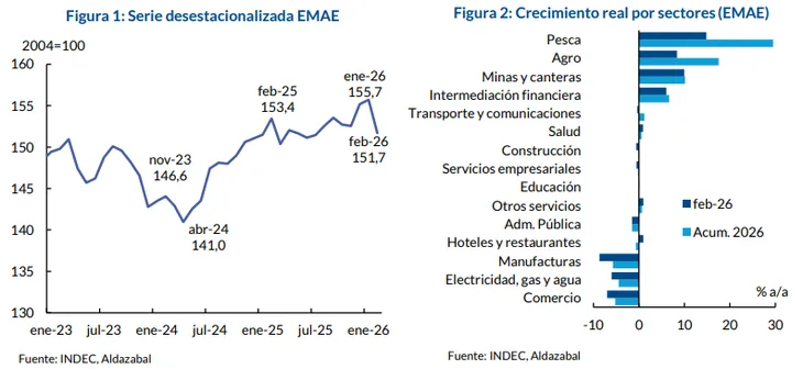 El Estimador Mensual de Actividad Económica evidenció una fuerte baja respecto de enero, llevando a la serie desestacionalizada a su nivel más bajo desde julio de 2025. En términos interanuales, la actividad también mostró una caída del 2,1%, la peor desde septiembre de 2024.