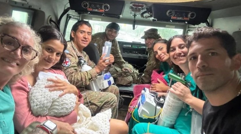 El traslado fue extremadamente complicado. Primero, el jefe del servicio los llevó en su vehículo particular hasta que encontraron calles bloqueadas por el agua. Luego, una ambulancia intentó continuar el trayecto, pero tampoco pudo avanzar. Finalmente, el Ejército los rescató en un camión militar.