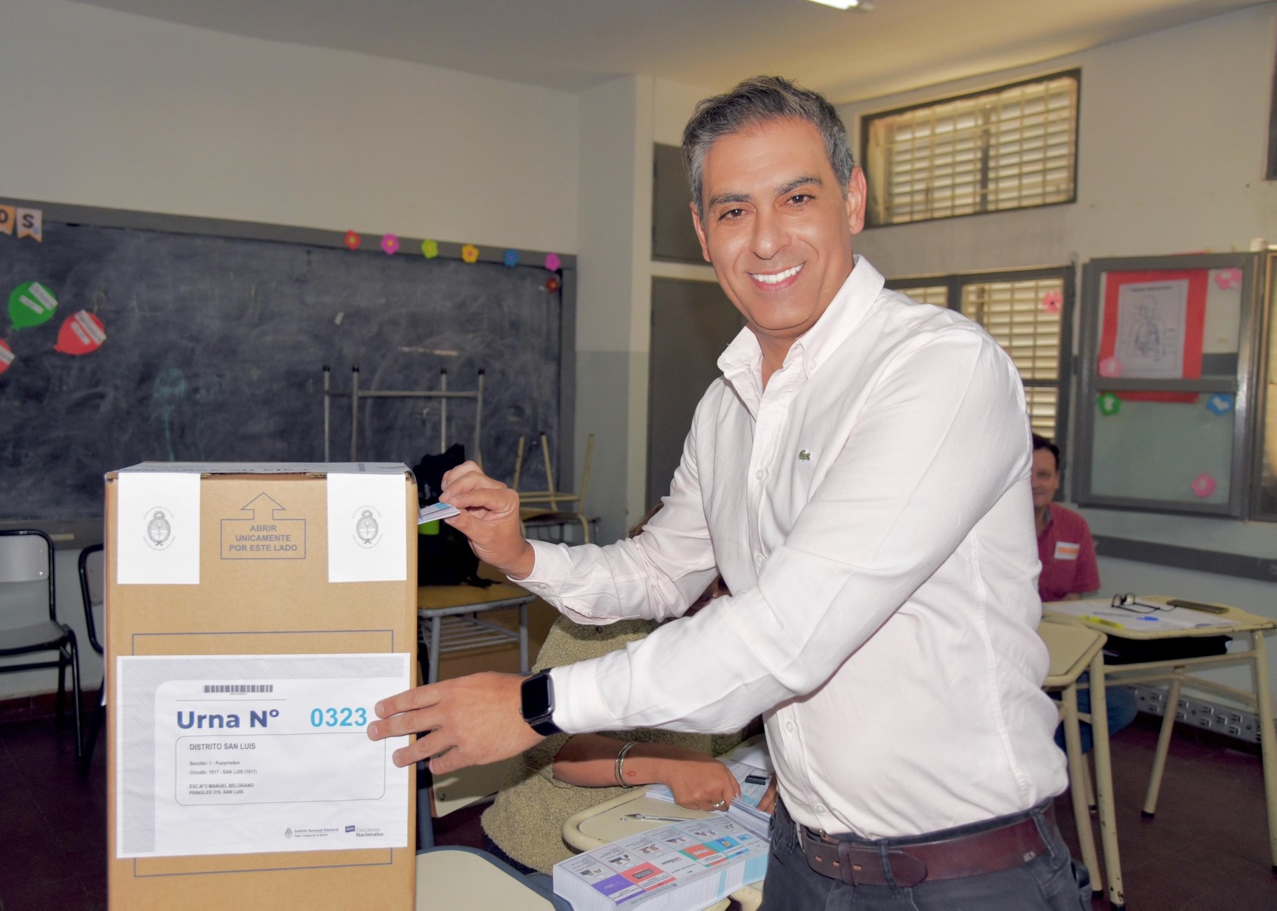 El intendente de San Luis Gastón Hissa emitió su voto este domingo al mediodía en la Escuela N° 3 Manuel Belgrano. Luego de cumplir con el acto, dialogó con la prensa y subrayó el valor de la participación ciudadana durante la jornada electoral.