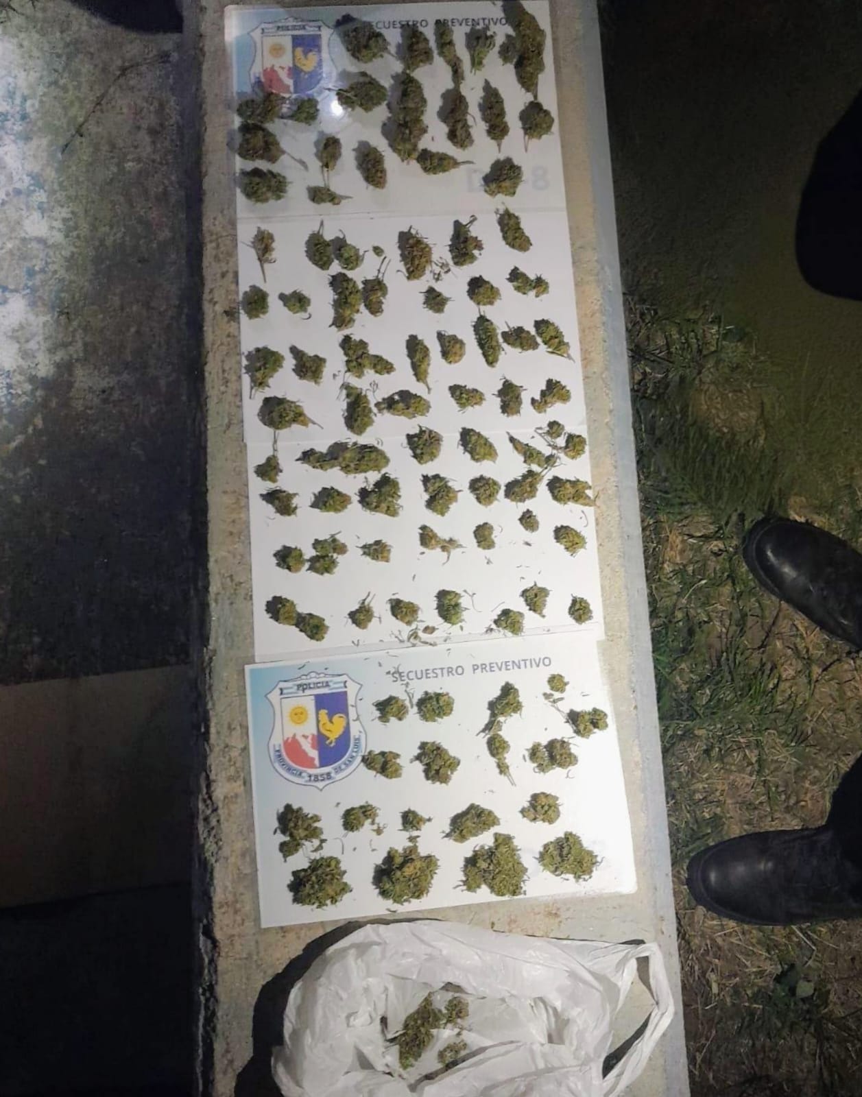 Durante el procedimiento, los policías incautaron envoltorios de nylon con florescencias de marihuana, suficientes para la elaboración de 174 dosis, valuadas en $610.000, y además secuestraron un arma de fuego tipo pistolón antiguo.