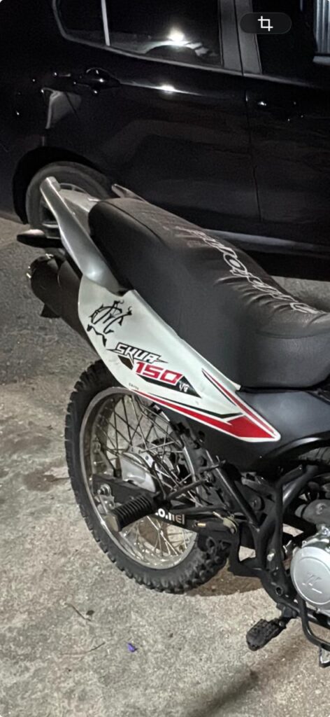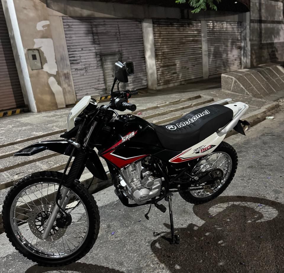 La motocicleta sustraída es una Motomel Skua 150 centímetros cúbicos de color negro con rojo.