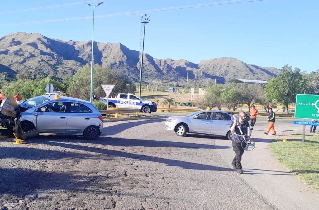 Antes de llegar a la rotonda, el auto recibió el impacto en la parte trasera por un Chevrolet Joy que conducía un joven de 22 años que ingresaba desde el empalme con la Autopista de las Serranías Puntanas.
