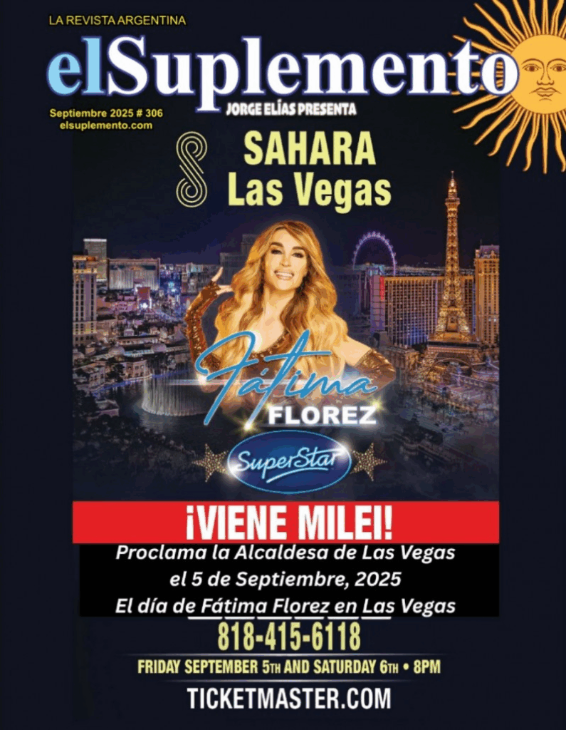 El traslado será en el avión presidencial, con un costo estimado de entre 300.000 y 500.000 dólares. El destino: el Hotel Sahara, famoso por haber recibido en su escenario a figuras como Elvis Presley, donde Milei tendrá ubicación VIP para el espectáculo de Florez.