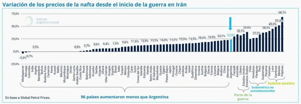 A diferencia de otros países que aplican mecanismos de amortiguación o desacople, el mercado argentino refleja con mayor intensidad las variaciones globales. Esto ocurre incluso siendo un país exportador de petróleo, lo que marca una particularidad dentro del escenario internacional.