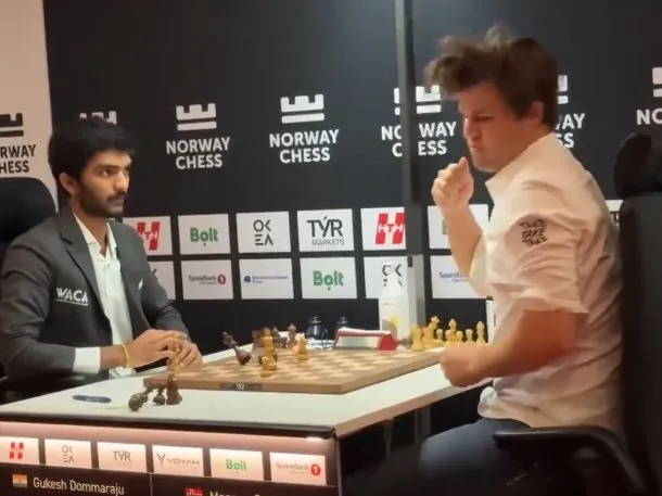 La sexta ronda del prestigioso torneo dejó una de las imágenes más impactantes del año. Magnus Carlsen, ex campeón mundial y actual número uno del ranking, cayó ante el joven Gukesh Dommaraju en un duelo que parecía totalmente controlado por el noruego. Con una valoración de entre -2 y -5 en los motores de análisis, Carlsen tenía ventaja decisiva y todo apuntaba a una nueva victoria en casa.