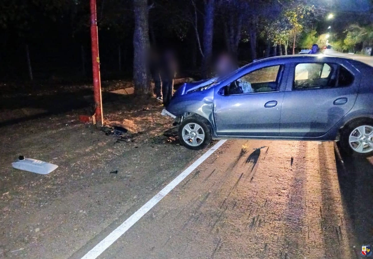 La conductora circulaba de norte a sur a bordo de un Renault Logan, cuando un perro se cruzó de manera repentina sobre la calzada. Al intentar esquivarlo, realizó una maniobra que terminó con el vehículo impactando contra un poste de iluminación pública.
