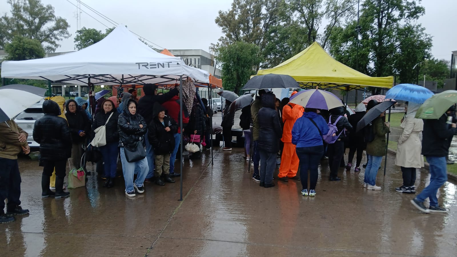 “Los salarios más bajos del país”, remarcan los trabajadores, incluso en la protesta que se realiza bajo la lluvia.