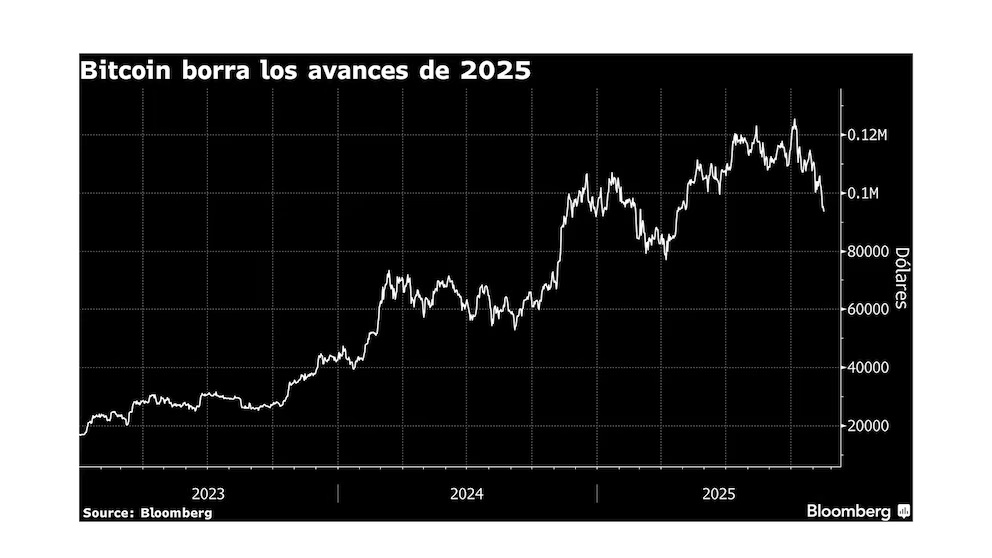 Tras alcanzar un récord histórico superior a los USD 126.000 en octubre, Bitcoin inició una corrección abrupta que lo llevó a rondar los USD 91.750, una baja del 1,5% en la última jornada.