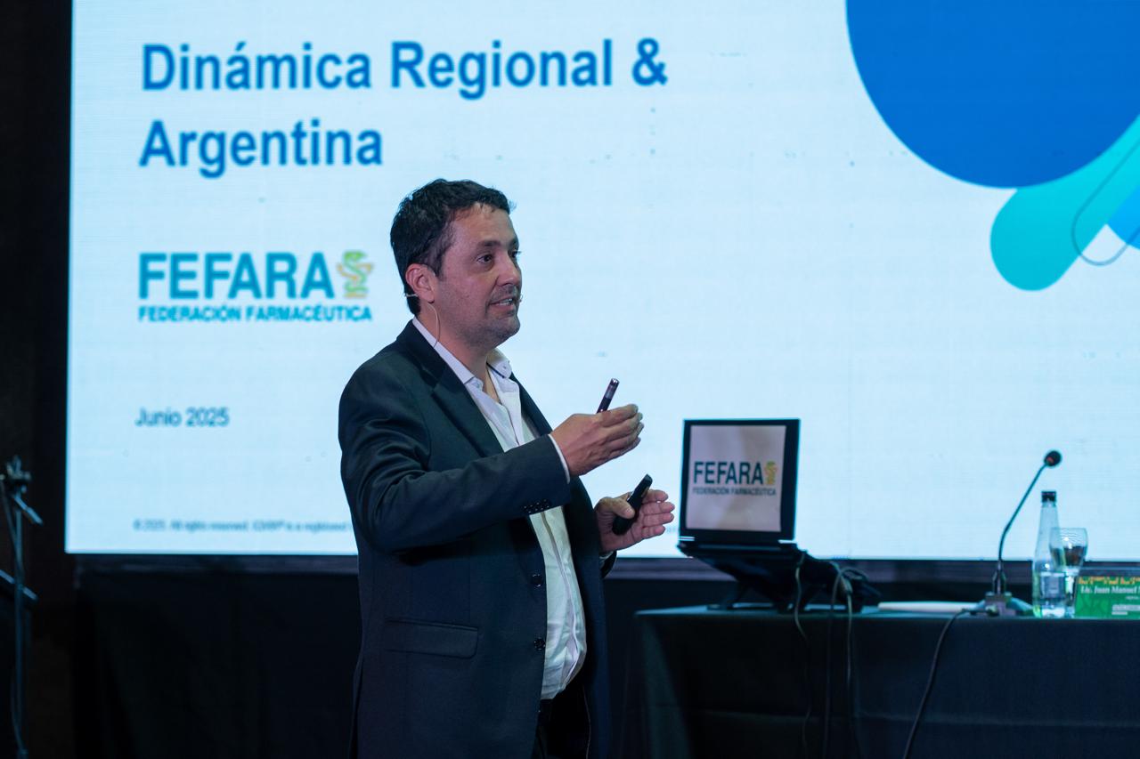En otra mesa, centrada en el mercado de medicamentos, reunió a Juan Manuel Santamaría (Farmalink), Alejandro Sonis (Ministerio de Salud), Juan Manuel Navia Barrera (IQVIA) y Virgilio Petrungaro (CONETEC), con la coordinación de Natalia Rodríguez, vicepresidenta segunda de FEFARA.