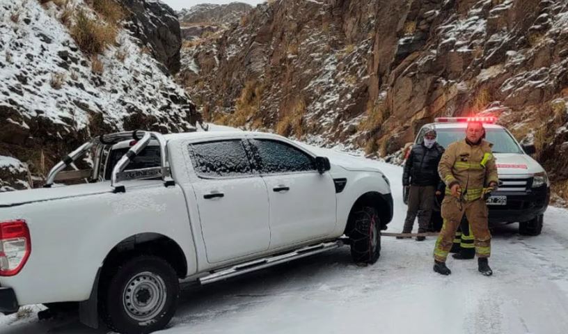 El vehículo perdió el control en un tramo donde las condiciones climáticas vuelven peligroso el tránsito. Una dotación del cuartel local acudió al lugar y logró rescatar a los ocupantes, además de retirar la camioneta.