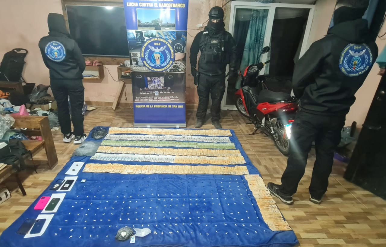 Secuestran cocaína, marihuana y más de $1,6 millones en un allanamiento en San Luis