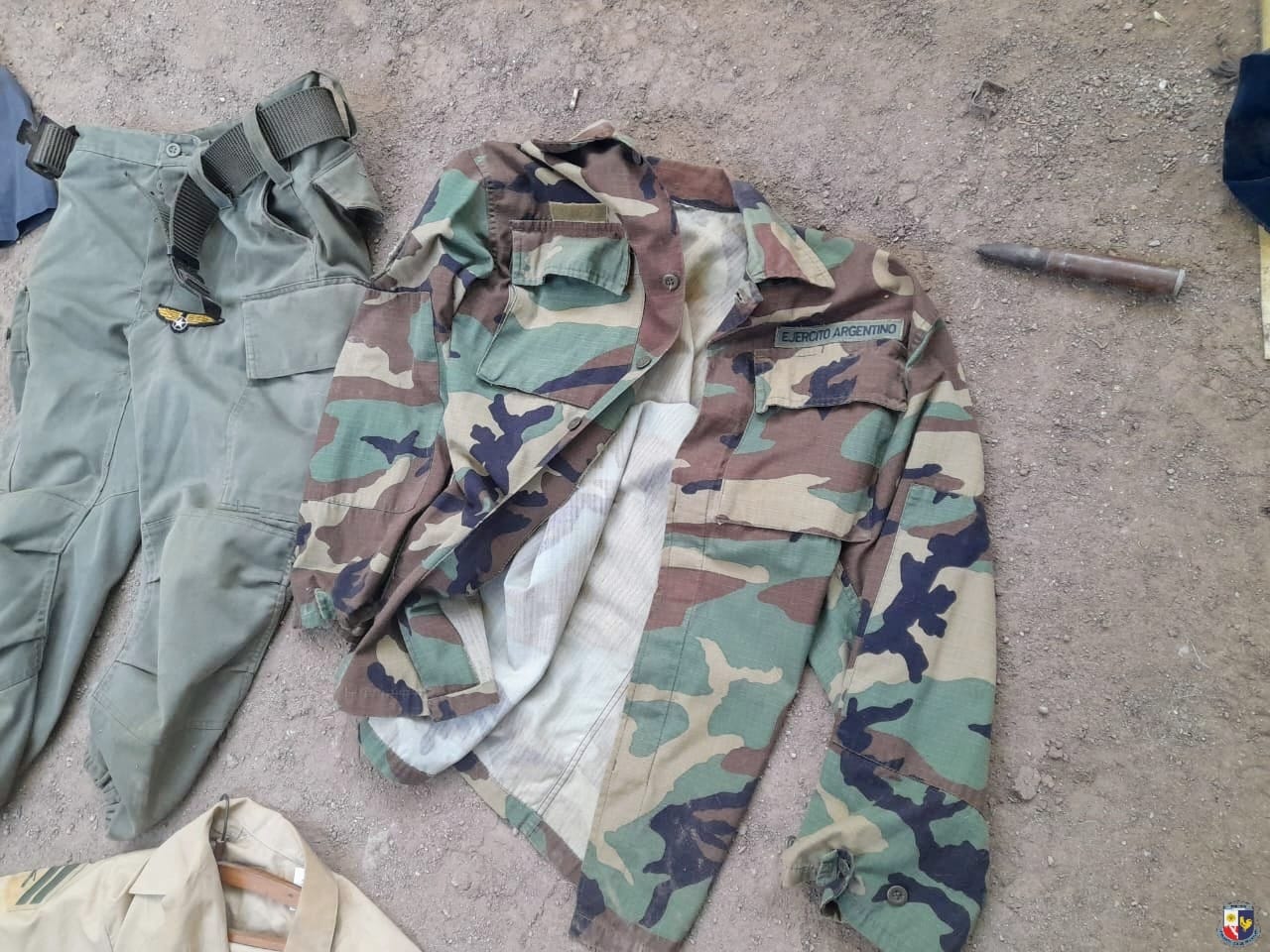 En la casa, los efectivos hallaron indumentaria y elementos pertenecientes a distintas fuerzas de seguridad, cuya procedencia está bajo investigación.
