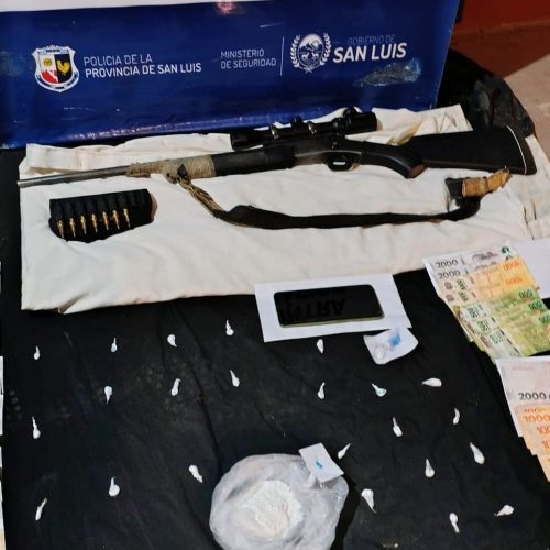 Los procedimientos fueron ordenados por el Juzgado Federal de Villa Mercedes. El primero se realizó en una vivienda ubicada en calle Guayaquil al 1000. Allí, la Policía incautó envoltorios de nailon con cocaína, un teléfono celular, $123.100 en efectivo, y un arma de fuego tipo fusil calibre 30.06 con mira telescópica y siete cartuchos. Los últimos elementos fueron secuestrados por efectivos de la Comisaría 36°.