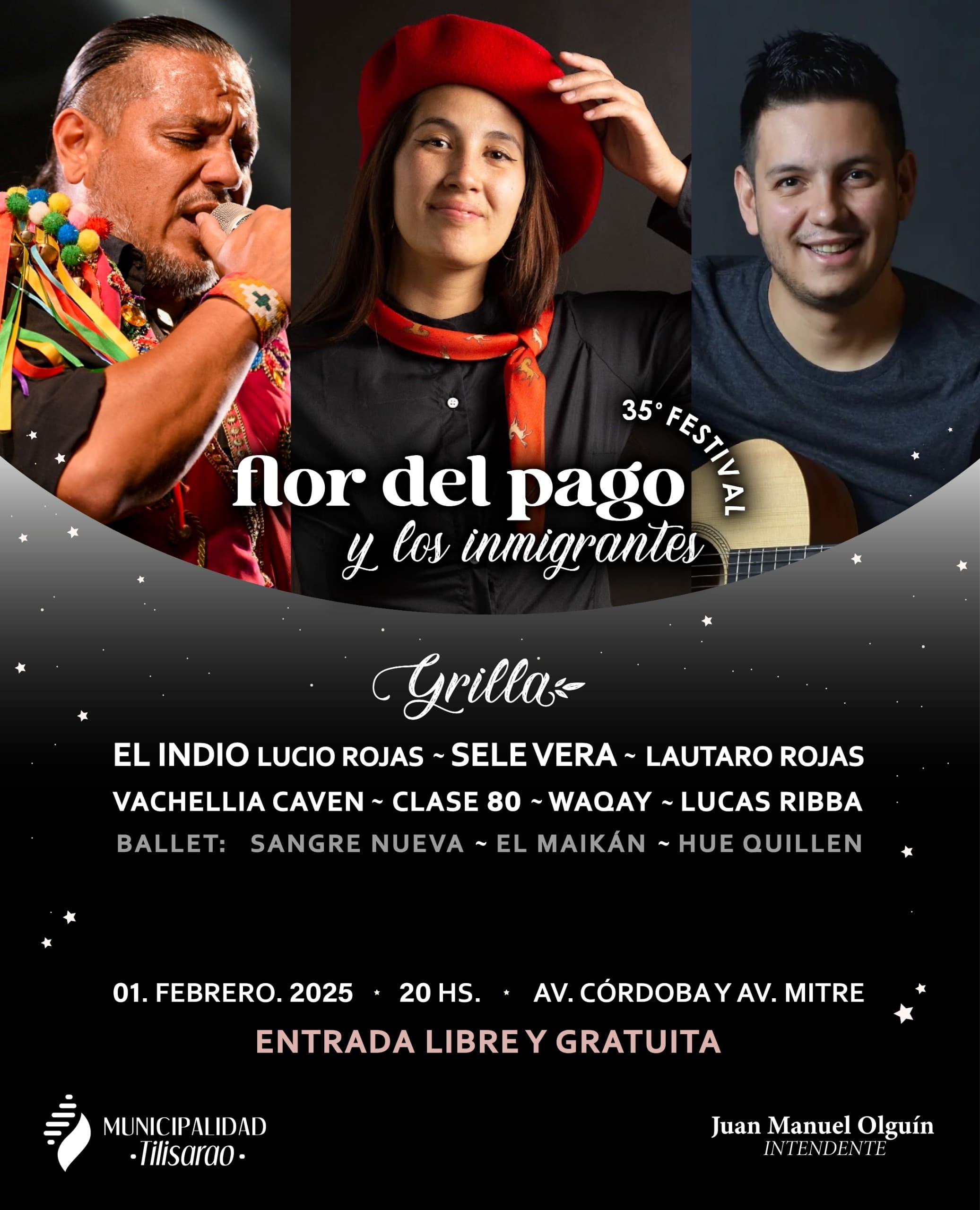 El festival contará con una destacada grilla artística encabezada por el “Indio” Lucio Rojas y “La Sele Vera y Los Pampas”, además de músicos y ballets locales con trayectoria en distintos escenarios del país.