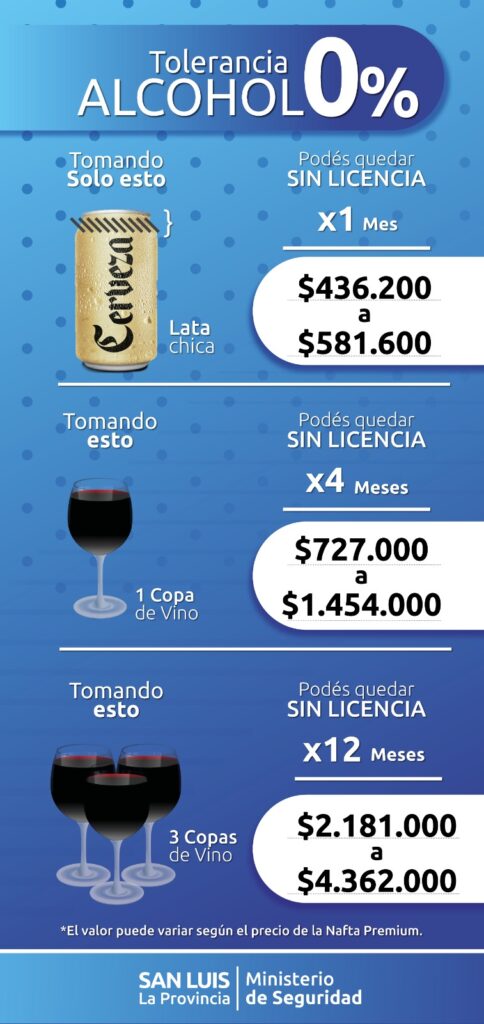 Por último, señalaron que quienes arrojen resultados positivos en los test de alcoholemia enfrentarán sanciones severas, con multas que oscilan entre los 436 mil pesos y más de 4 millones, además del secuestro del vehículo y la eventual pérdida del carnet de conducir.