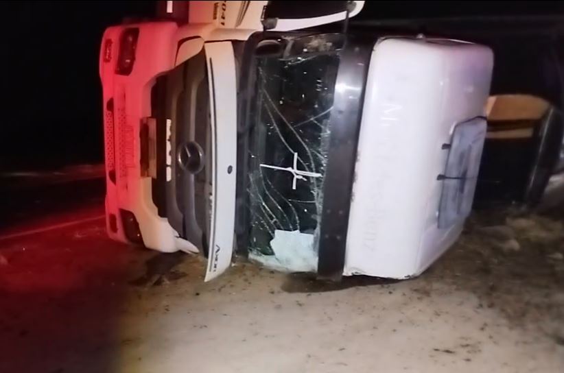 Un camionero resultó herido tras volcar en la ruta 8 en Villa Mercedes