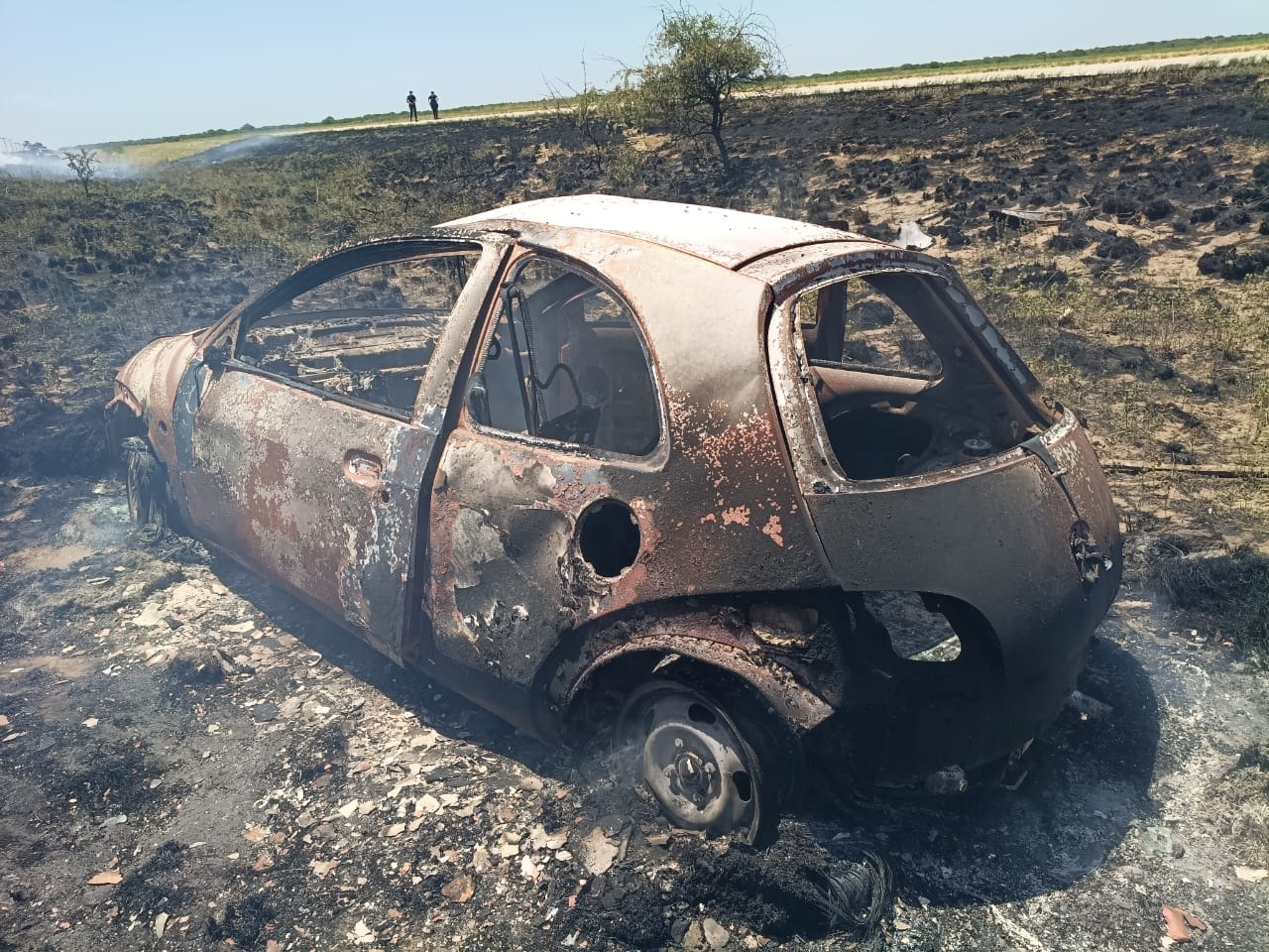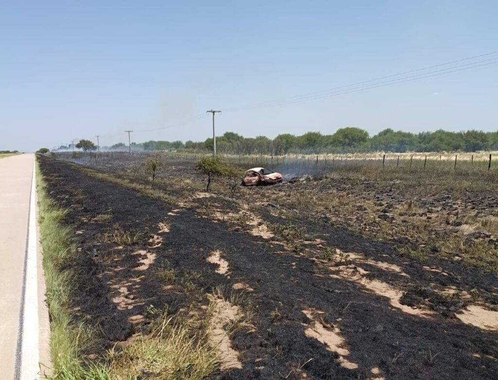 Los Bomberos Voluntarios de Buena Esperanza extinguieron el incendio del automóvil y del sector de la banquina. Se constató la quema de vegetación en un tramo de aproximadamente 1,5 kilómetros, producto de la propagación del fuego.