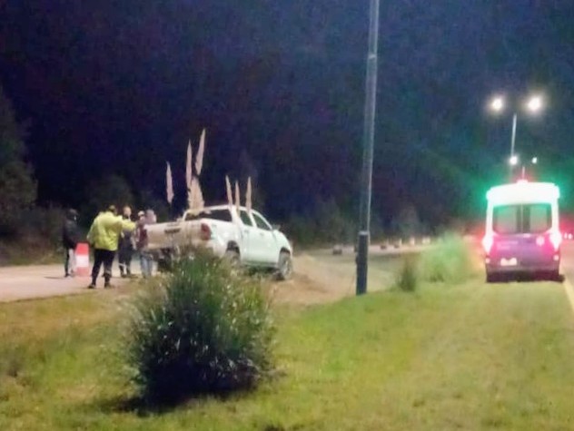 La camioneta despistó, impactó contra un poste de iluminación del cantero central y terminó sobre un montículo de tierra en la zona intervenida.