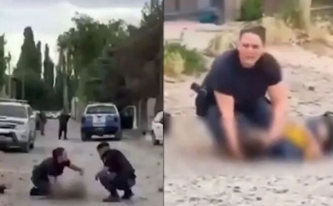 La secuencia quedó grabada por la cámara privada de un domicilio. En el video se observa el momento en el que la camioneta policial avanza por la calle a gran velocidad, dejando una nube de polvo a su paso.