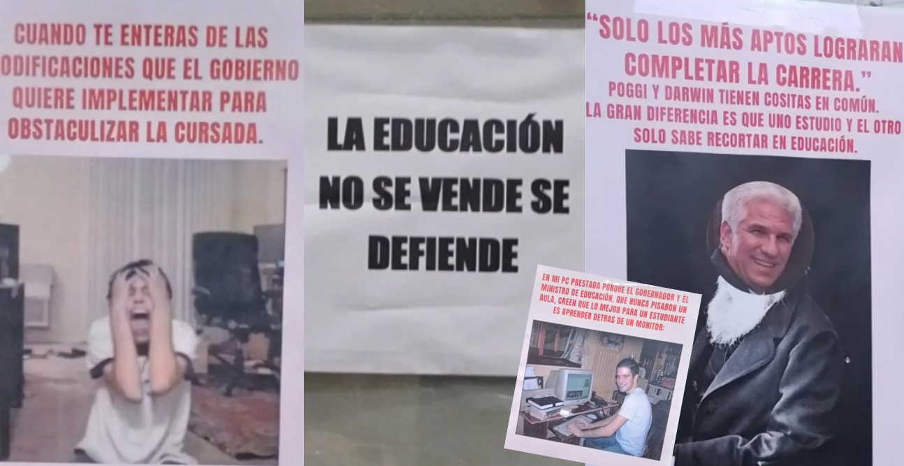 El viernes pasado, el IFDC se preparaba para un acto de colación que podía contar con la presencia del gobernador Claudio Poggi. La expectativa generó movimiento en la comunidad educativa, que decidió llenar los pasillos con carteles donde reflejaron su malestar por la falta de respuestas del Gobierno provincial.