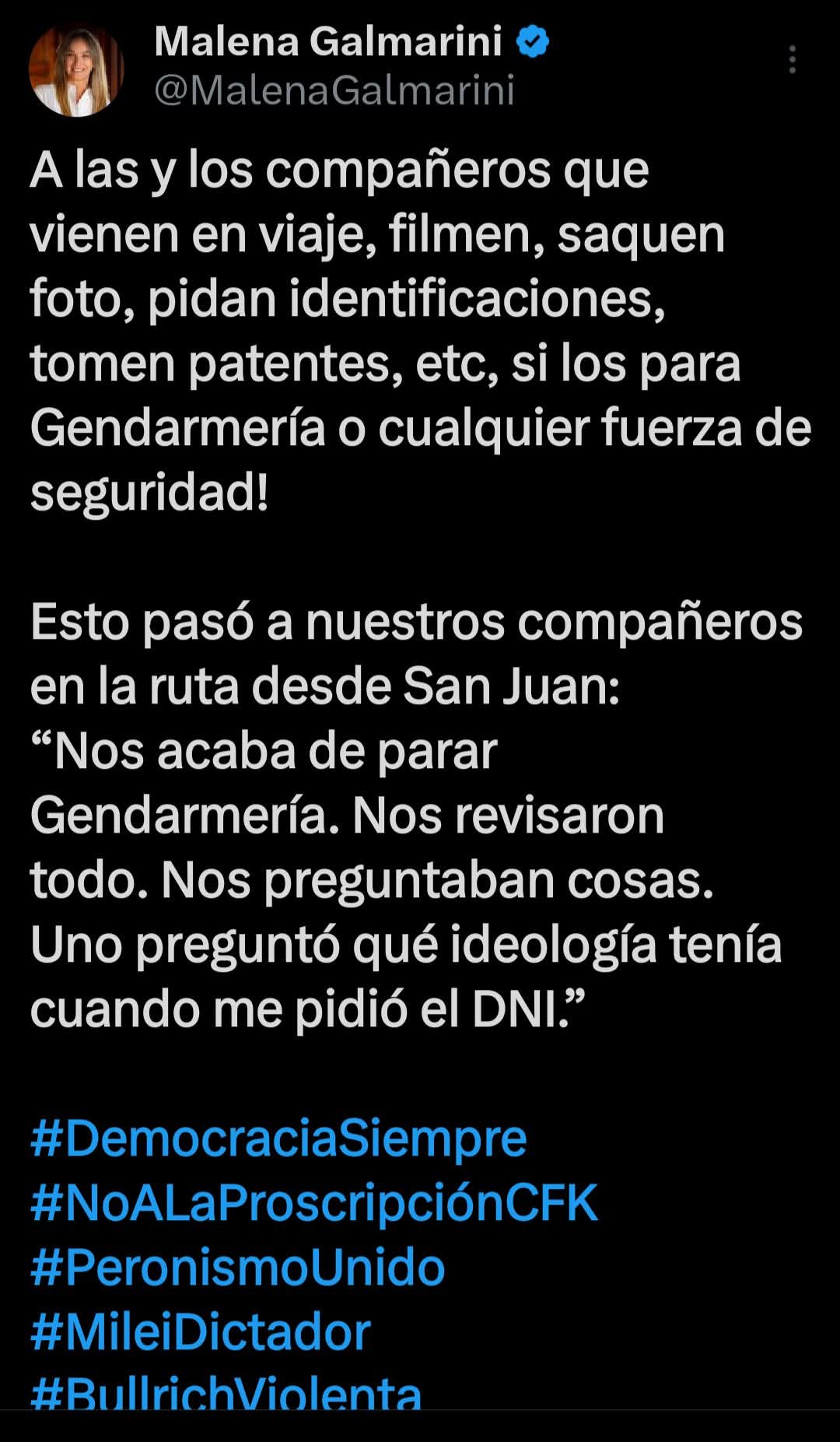 Con un posteo en la red social X, la periodista Cynthia García consideró que se trata de una “intimación hacia quienes viajan a la marcha”.