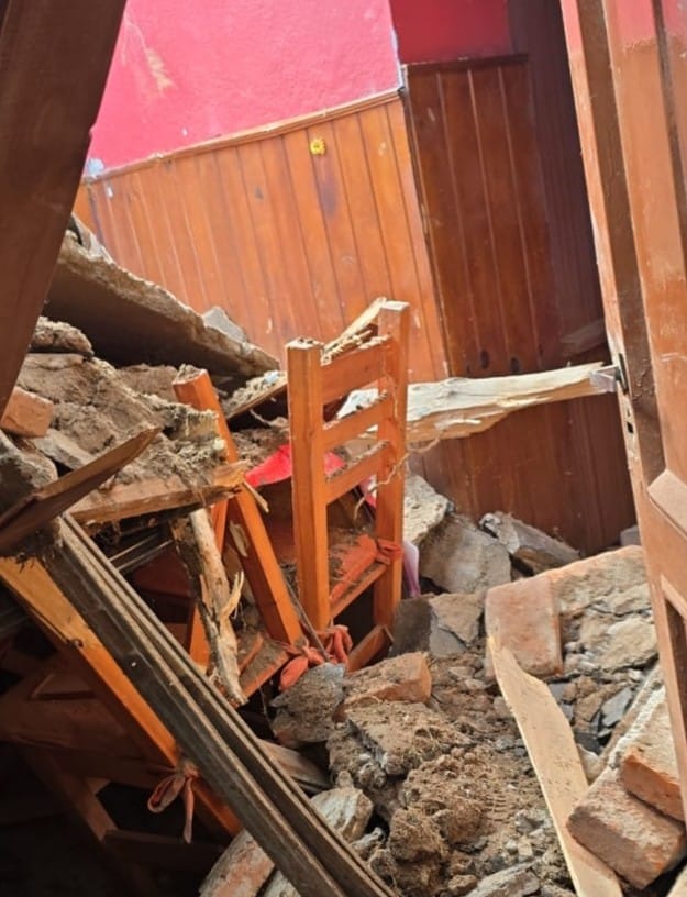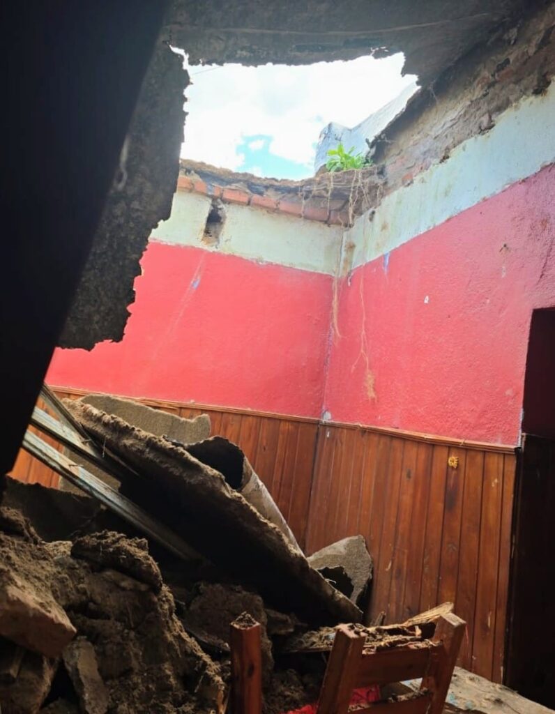 Un sector del techo de una vivienda se derrumbó este martes por la tarde en la ciudad de Villa Mercedes. En el lugar se encontraban dos mujeres y un adolescente, quienes resultaron sin heridas, aunque recibieron asistencia preventiva.
