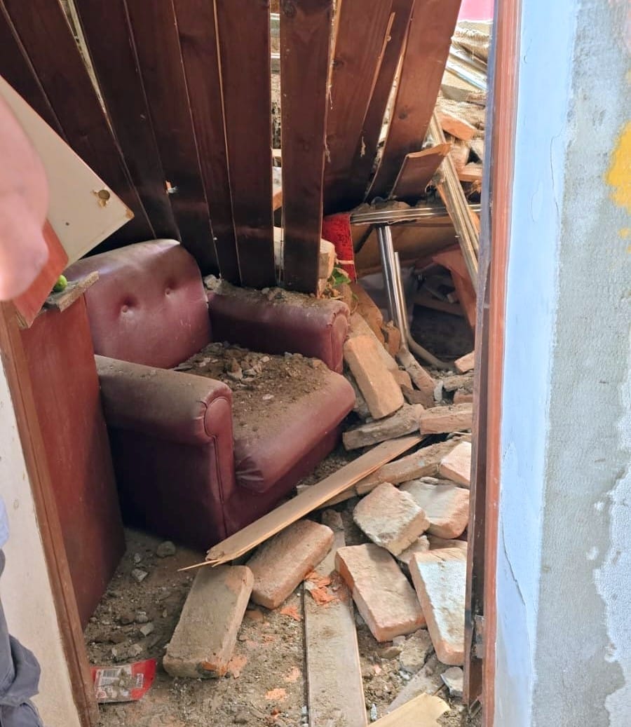 Al ingresar a la vivienda, los agentes constataron el derrumbe de parte del techo del sector de la cocina-comedor.