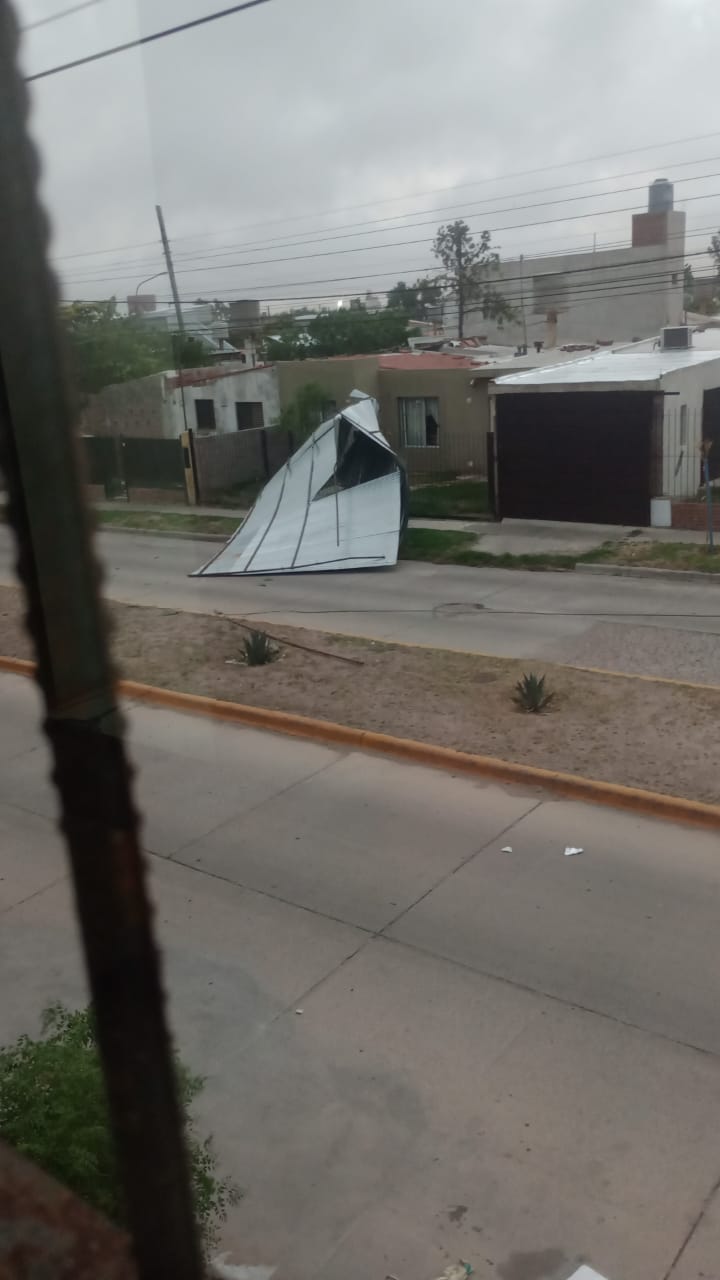 El fuerte viento provocó importantes daños como caída de arboles, postes de luz, cables y hasta hubo voladuras de techos. En los barrios El Lince, 109, 110, y 114 Viviendas, zona norte, y oeste como así también en la ciudad de Juana Koslay hubo cortes de luz.