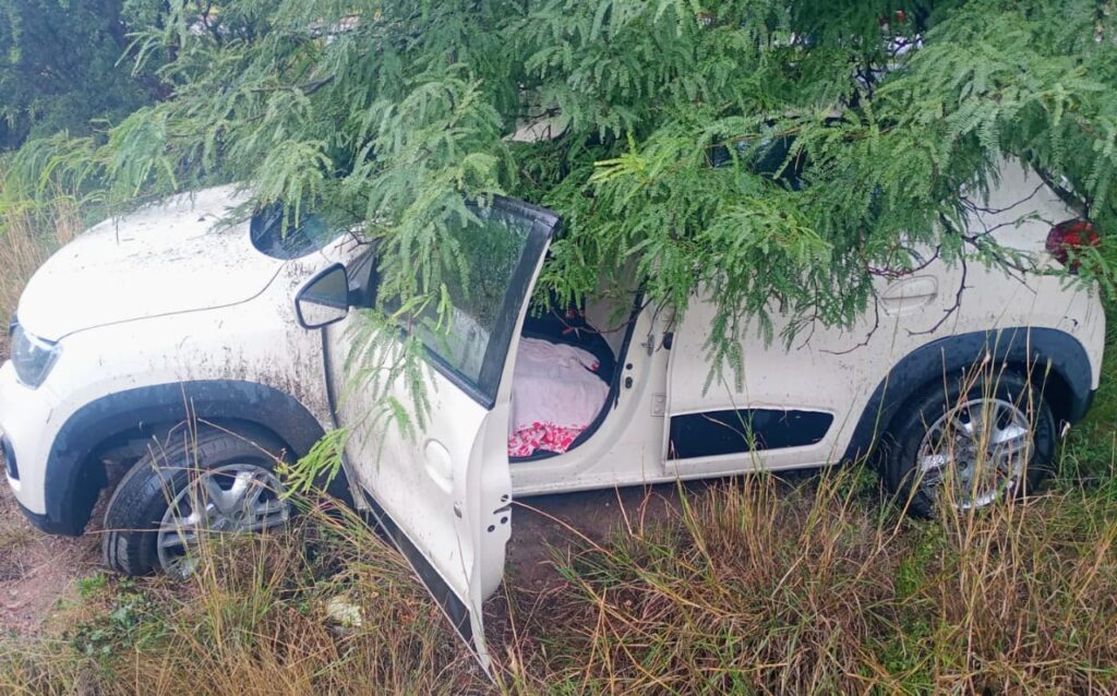El episodio ocurrió cerca de las 14.15. La conductora transitaba en un Renault Kwid de norte a sur cuando, por razones que se tratan de establecer, perdió el control del rodado. El auto despistó, volcó y quedó al costado de la banquina.