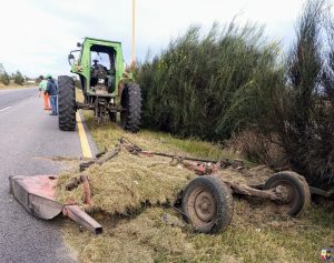Tras el impacto, el chofer del tractor, un hombre de 32 años, cayó de la máquina y sufrió golpes menores. La camioneta, en tanto, volcó unos 200 metros más adelante.